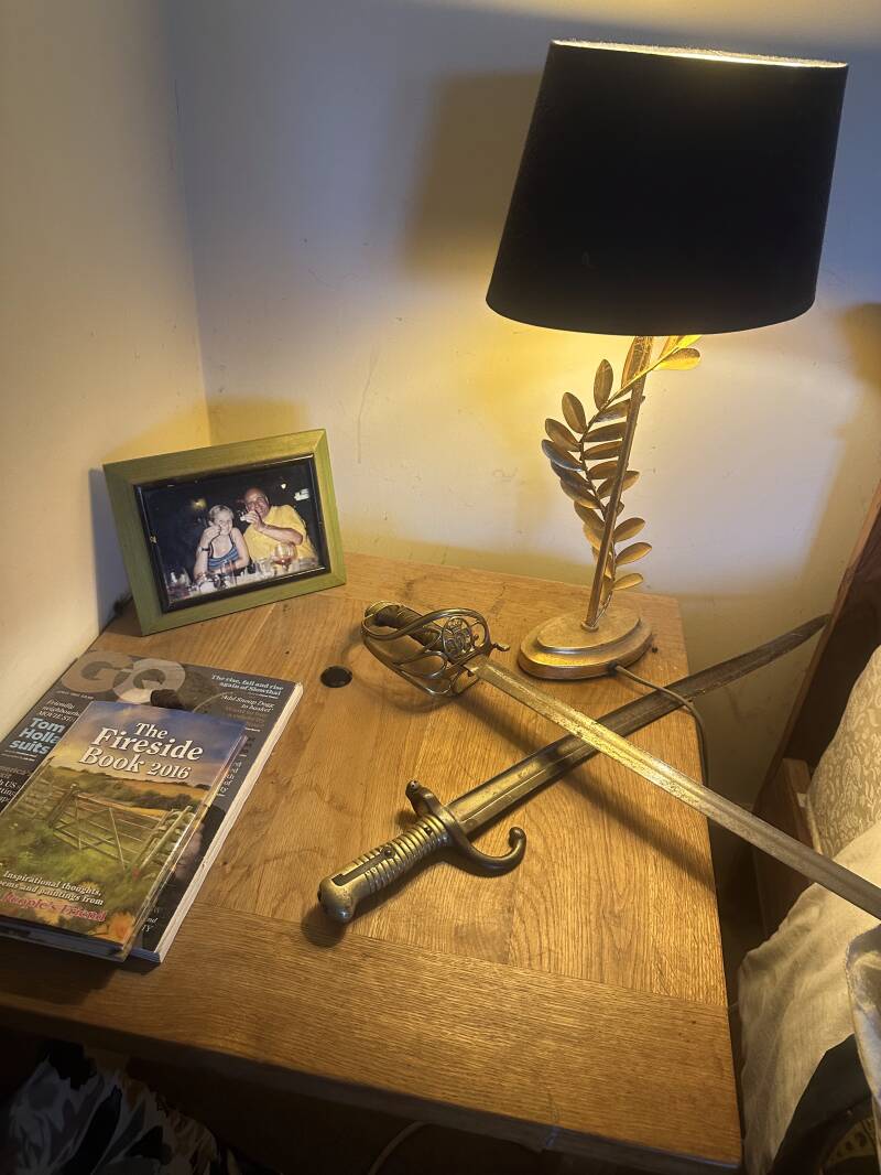 THREE ITEMS...LOVELY TABLE LAMP £30 FROM NEXT #2 REAL CAVALRY (VICTORIAL I AM TOLD)OFFICERS SWORD £50 AND #3 BAYONET £50 THE PAIR BOTH HAVE ORIGINAL SHEATHS